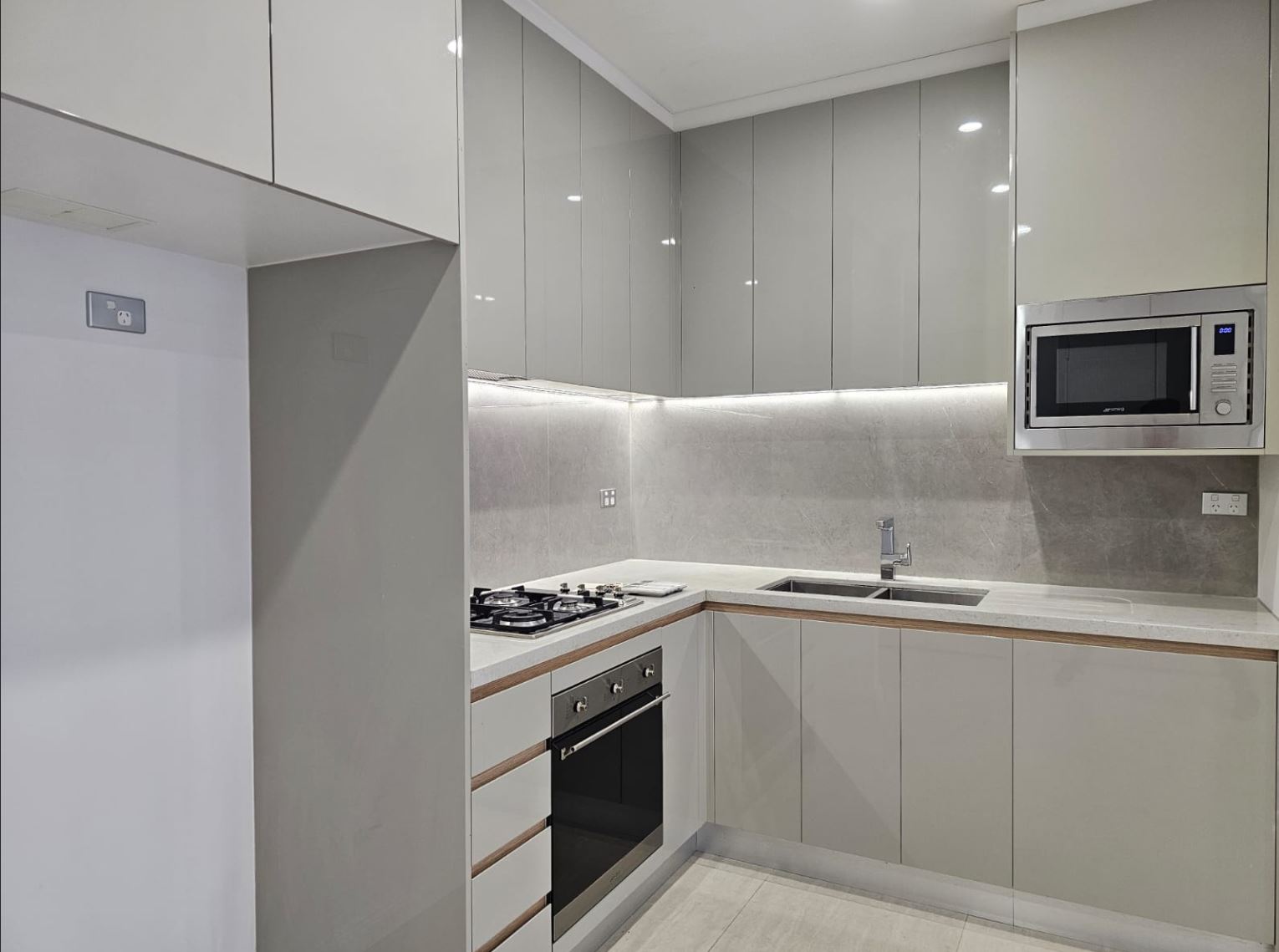• Contemporary kitchen with stone benchtop and quality appliances